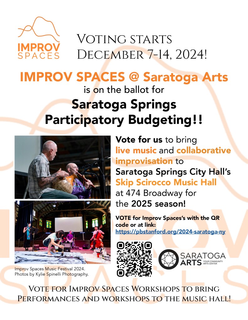 Please also remember to vote for Improv Spaces @ Saratoga Arts for the Saratoga Springs Participatory Budgeting!