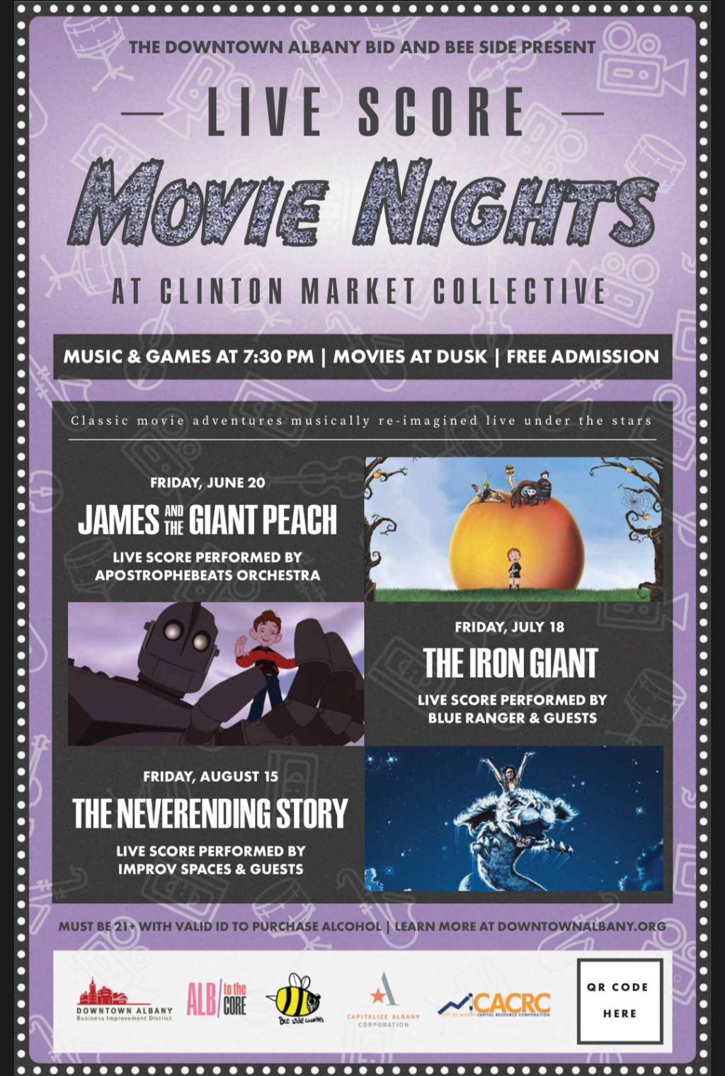 We hope that you can make it to this special screening of “The Neverending Story” that will be projected outdoors at the Albany Clinton Market Collective on Friday, August 15th. At the invitation of Bee Side Cassettes, musicians from Improv Spaces Ensemble will play an original improvised live score at the new Clinton Market Collective space. Fight off summer fomo, fill in your “Stranger Things” knowledge bank, and join us for an evening to remember of live improvised music and a classic ’80s childhood existential film in the vein of “Labyrinth” and “The Dark Crystal” with large pre-CGI animatronic puppets.