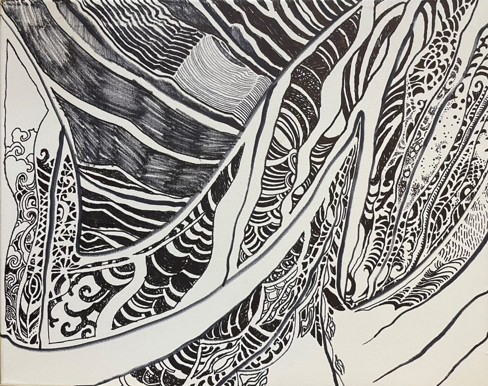 Image: Michael Miyahira, untitled WIP, 2024, sharpie on gessoed canvas,16×20 in.