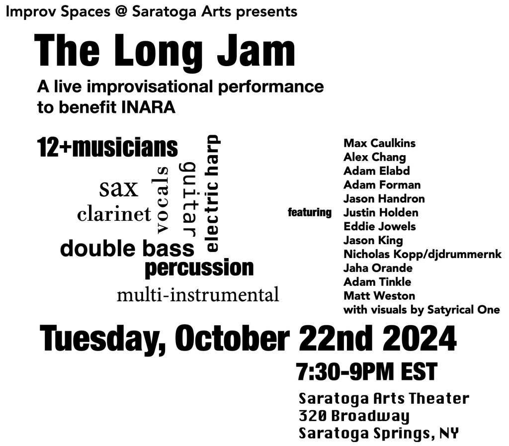 The incubator project will be presented as a live performance of the work-in-progress at the Troy Savings Bank Music Hall on Tuesday, February 25th, 2025 at 7pm for feedback that will be open to the public. The piece will then debut at the 2025 Improv Spaces Music Festival on Saturday, June 7th at the Round Lake Auditorium.
