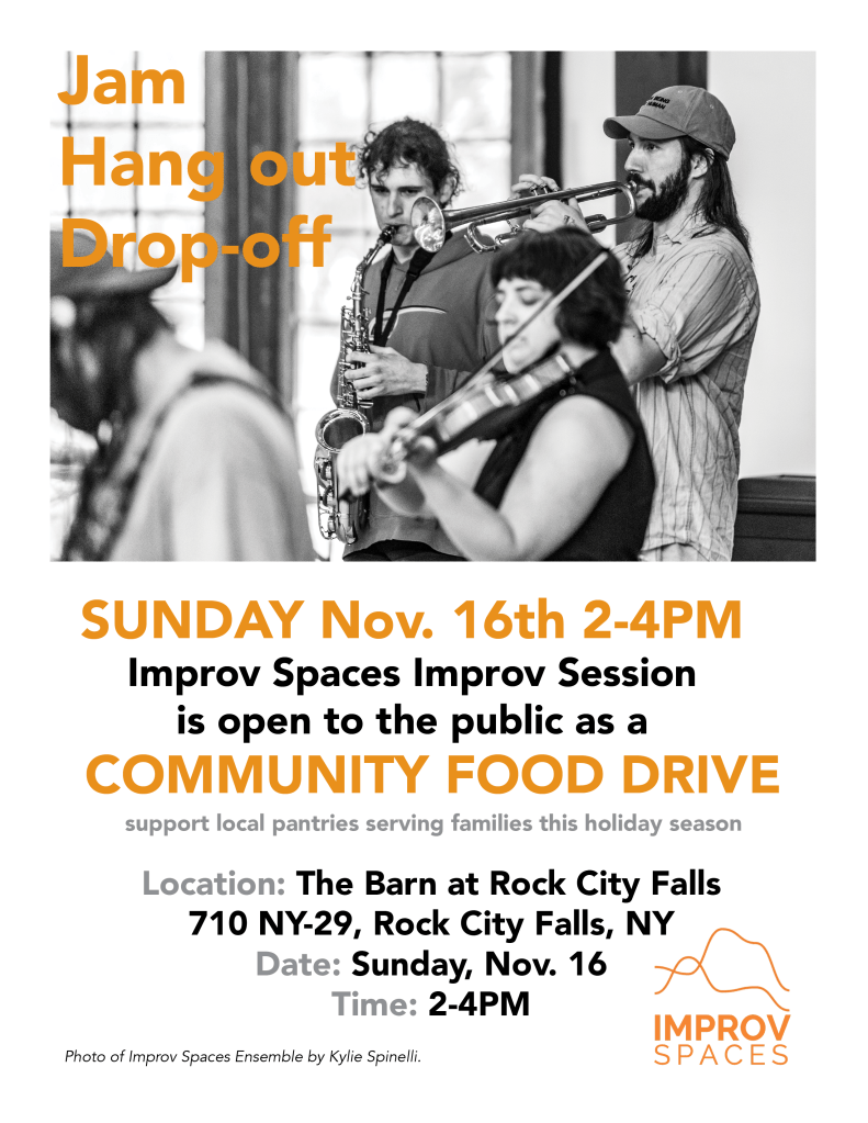 IMPROV SPACES is hosting Improv Sessions — a monthly series of invited improv sessions with musicians that began July 2024 at multiple locations throughout the region including at the Troy Savings Bank Music Hall, Saratoga Arts, Round Lake Auditorium, YESFOLK, and The Barn at Rock City Falls.