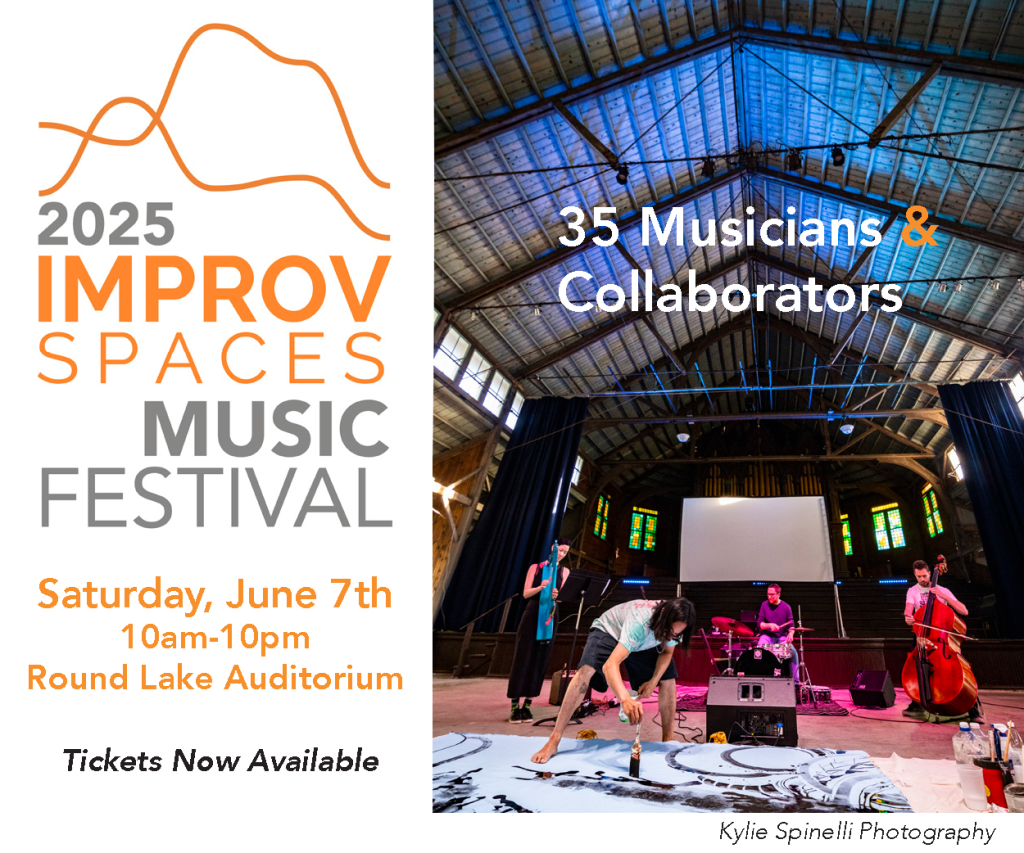 The 2025 Improv Spaces Music Festival took place on June 7, 2025 10am-10pm at the Round Lake Auditorium (2 Wesley Ave, Round Lake, NY) 2025 Festival Program